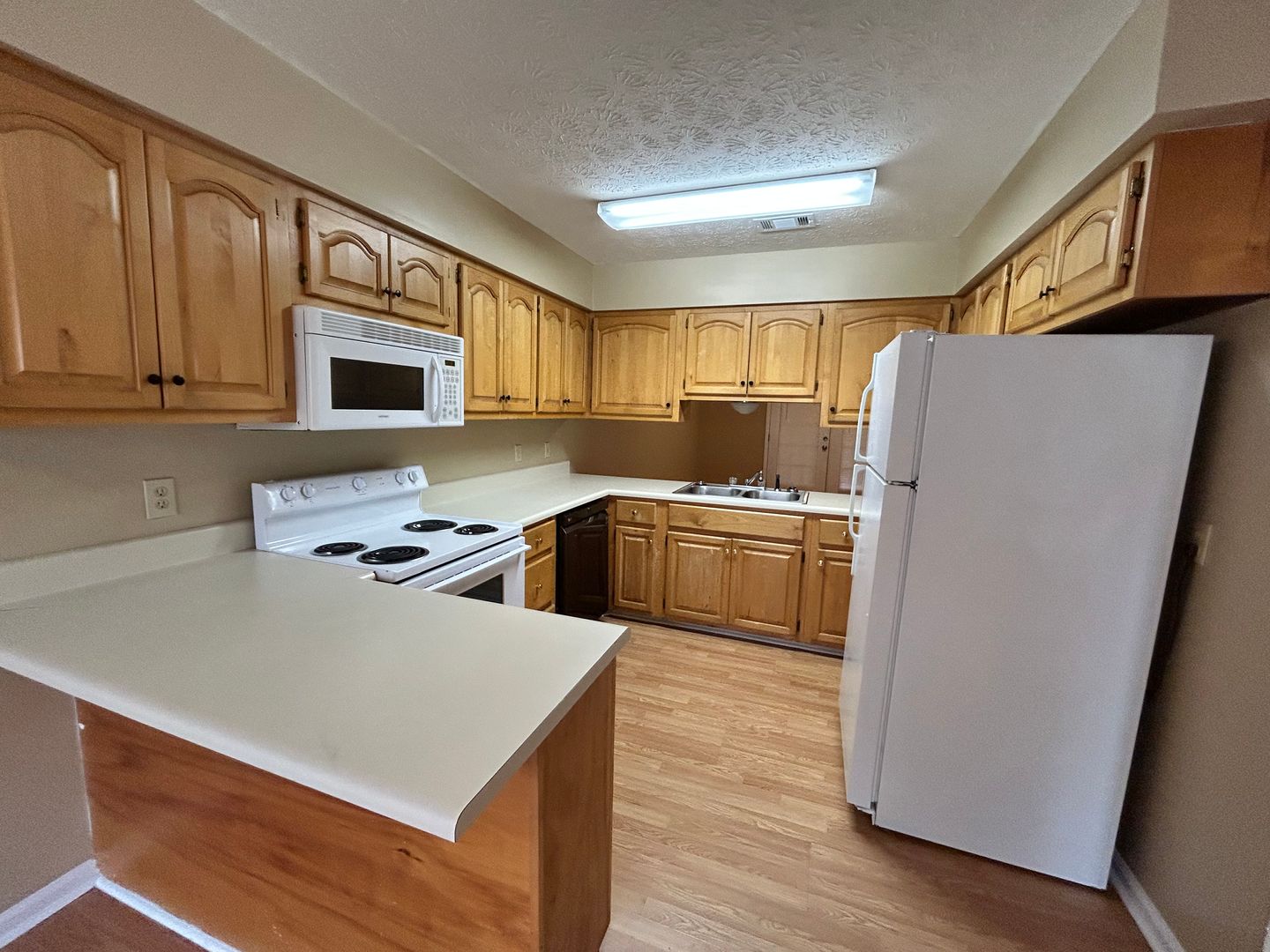 This charming 3-bedroom, 2-bathroom home features high vaulted ceilings that create a spacious and airy atmosphere. The covered back porch is perfect for enjoying the outdoors rain or shine. The eat-in kitchen is ideal for casual dining and entertaining. Simulated wood flooring throughout adds a touch of warmth and elegance to the space. Don't miss out on the opportunity to make this house your home!