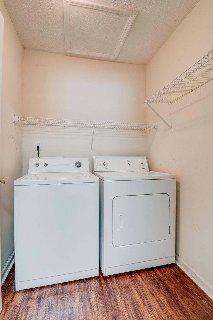 This unit at Heritage Terrace is a two bedroom two bath unit. Upon entering the unit you will find a large kitchen that opens to a spacious living room. The kitchen features tons of cabinet and counter space, along with full-size appliances. This unit also provides a large laundry room which is also great for extra storage space. The living room spans the length of the unit with enough space for living and dining room furniture. Each bedroom is of equal size with full baths and both feature walk-in closets.